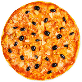 Italian tomato sauce, mozzarella, anchovies, black olives, oregano, fresh basil and parmesan.