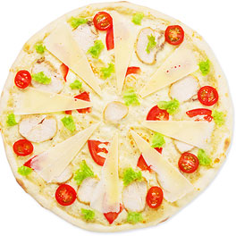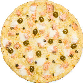 White base pizza, mozzarella, provolone, smoked salmon, olives, basil and parmesan.